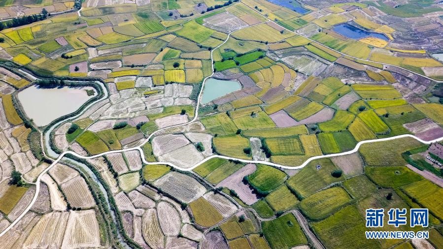 安徽省滁州市鳳陽小崗村的田野景象(2018年9月27日攝,無人機照片)。新華社記者張端攝