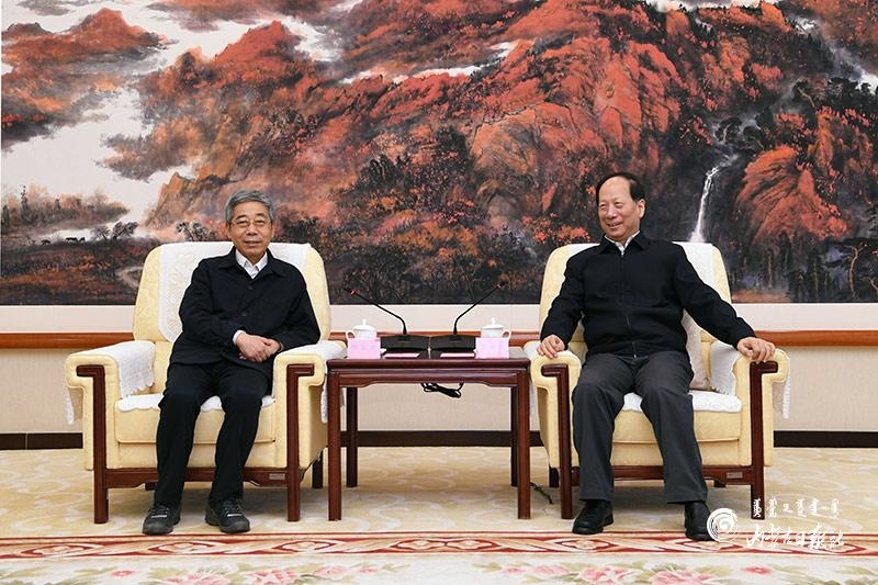 3月18日,自治區(qū)黨委書(shū)記、人大常委會(huì)主任石泰峰在呼和浩特會(huì)見(jiàn)教育部黨組書(shū)記、部長(zhǎng)陳寶生。內(nèi)蒙古日?qǐng)?bào)社融媒體記者 袁永紅 攝