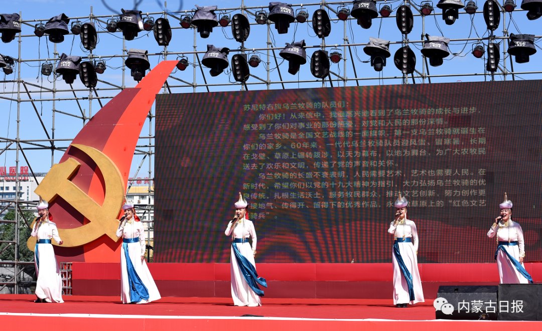 在建黨100周年華誕到來之際,6月17日,自治區(qū)文化和旅游廳主辦的“永遠跟黨走”——2021年烏蘭牧騎成立日主題活動暨全區(qū)烏蘭牧騎月活動在錫林浩特市啟動。