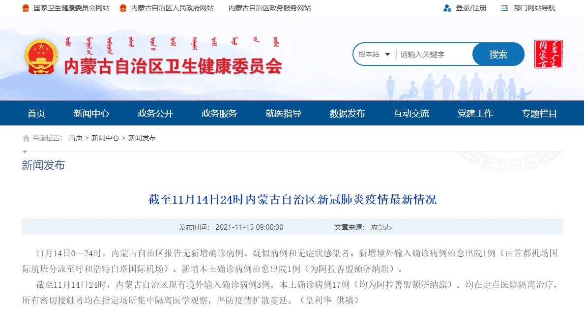 內蒙古自治區(qū)衛(wèi)生健康委員會網(wǎng)站截圖