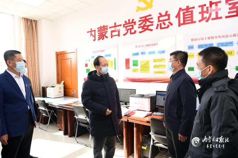 1月31日,自治區(qū)黨委書記、人大常委會(huì)主任石泰峰,來到自治區(qū)黨委總值班室檢查指導(dǎo)全區(qū)政務(wù)值班情況。內(nèi)蒙古日報(bào)社融媒體記者袁永紅攝