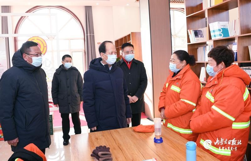 1月31日,自治區(qū)黨委書記、人大常委會(huì)主任石泰峰,來到呼和浩特市新城區(qū)體育場環(huán)衛(wèi)休息站,向春節(jié)期間值守工作崗位的環(huán)衛(wèi)工人送上新春祝福。內(nèi)蒙古日報(bào)社融媒體記者袁永紅攝