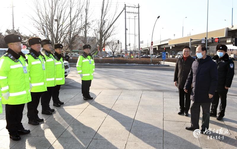 1月31日,自治區(qū)黨委書記、人大常委會(huì)主任石泰峰,走訪呼和浩特市公安局交警支隊(duì)賽罕大隊(duì)九中隊(duì)崗?fù)?,看望慰問一線執(zhí)勤交警。內(nèi)蒙古日報(bào)社融媒體記者袁永紅攝