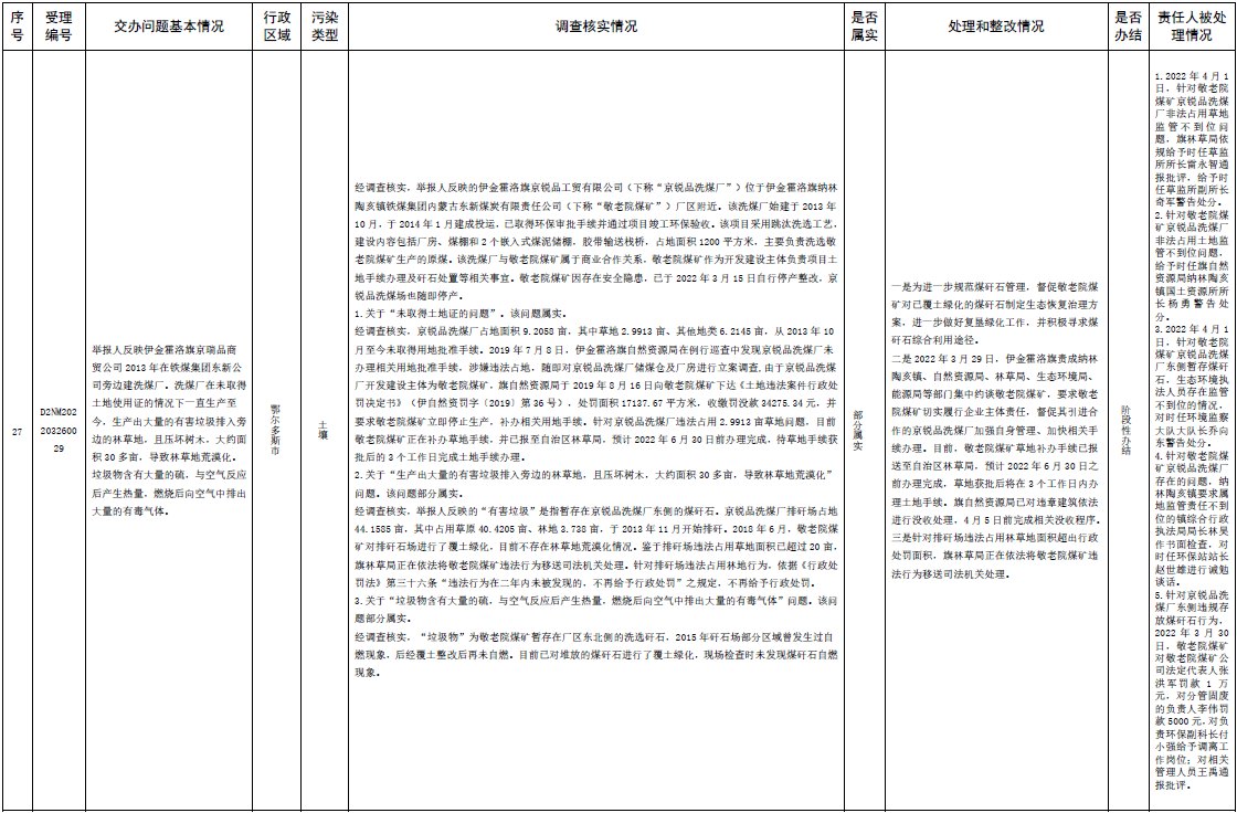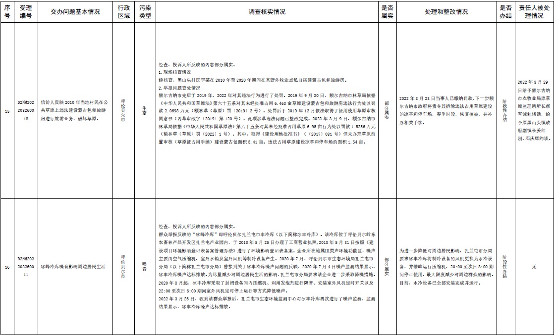 原標(biāo)題:中央第三生態(tài)環(huán)境保護(hù)督察組交辦內(nèi)蒙古自治區(qū)第二批42件群眾信訪舉報(bào)件辦理情況