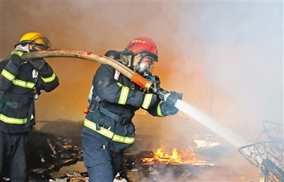 然而,與一般的火災(zāi)現(xiàn)場不同,這次他們遭遇到前所未有的復(fù)雜情況——葡萄糖遇火即熔化成糖漿,飛濺的火苗噼里啪啦從各方擊來,刺鼻的氣體到處彌漫,令人窒息。四面是濃煙和熊熊烈火,水槍噴出的水瞬間變成水蒸氣,讓人眼前一片模糊,頭頂上掉落的鐵皮隨時(shí)會(huì)劃傷他們。