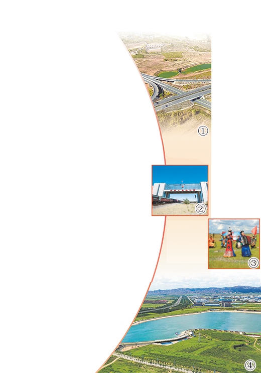 圖②:“二連號(hào)”中蒙寬軌集裝箱專列駛出內(nèi)蒙古自治區(qū)二連浩特國(guó)門,開(kāi)往蒙古國(guó)烏蘭巴托。
