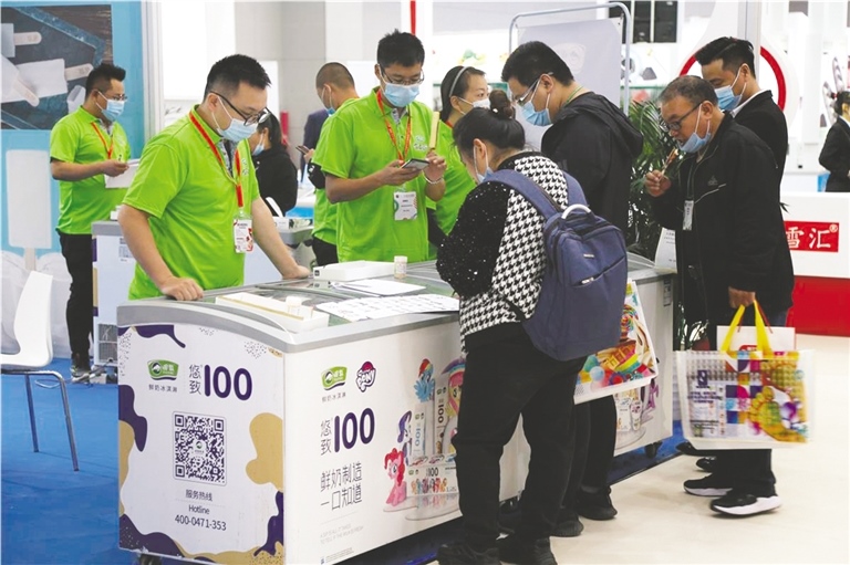 消費者在選購田牧系列冰淇淋產(chǎn)品。 喬淑娟 攝