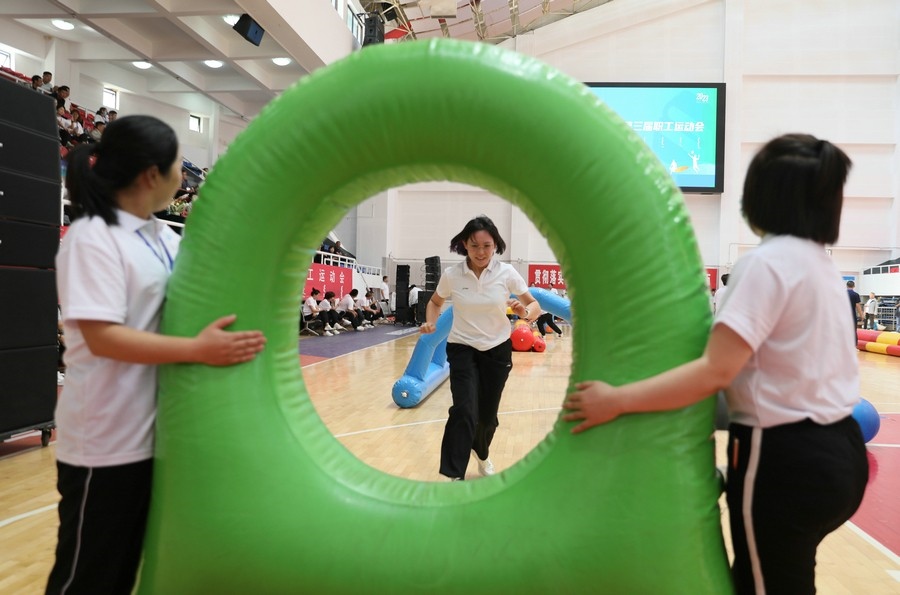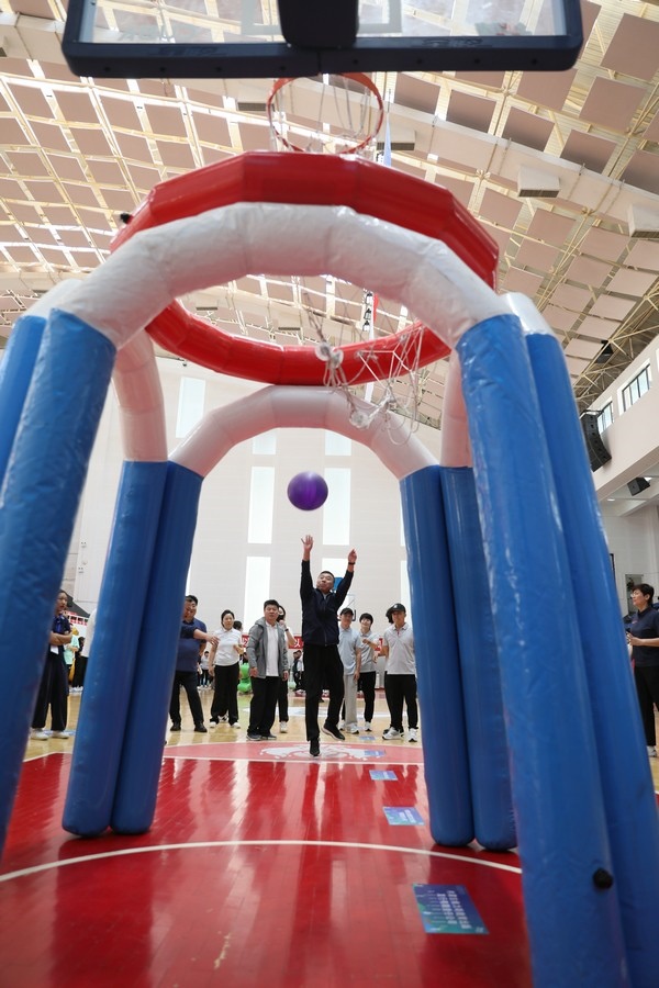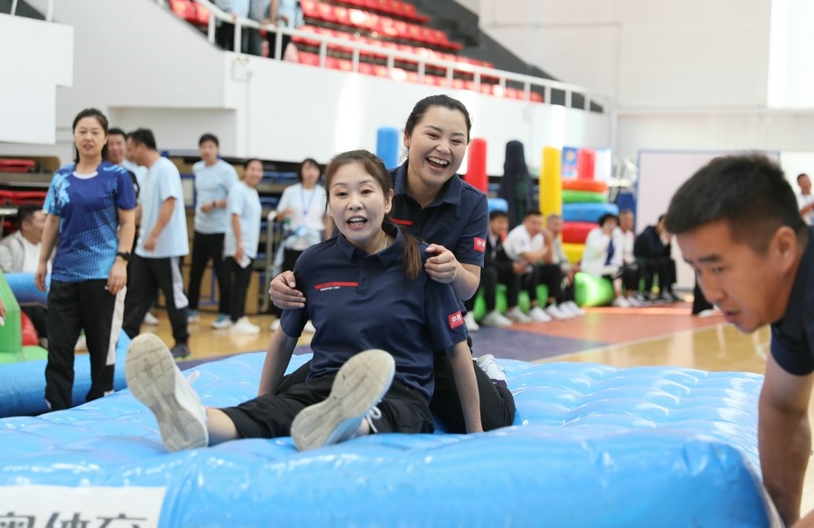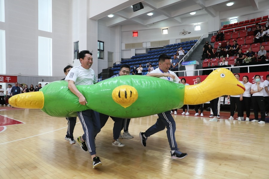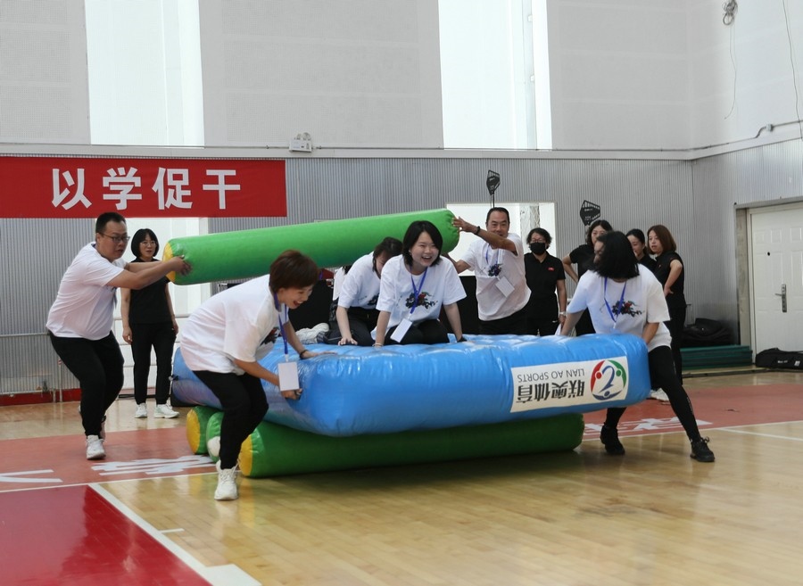 在隨后進行的趣味運動會中,依次進行了“陸地冰壺”“龜兔賽跑”“漢諾塔”等比賽項目。而在此前一天,羽毛球等項目也已開賽。賽場上,運動員們團結一心,奮力拼搏。觀眾席上,“最強氣氛組”組成強大的啦啦隊,為參賽選手們吶喊助威、加油鼓勁,共同凝聚團隊的精神,一起分享比賽的快樂。
