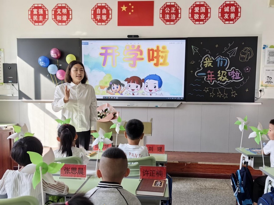 開學(xué)第一天,師生們踏著歡快的音樂步入校園,寫下新學(xué)期目標(biāo),擊鼓明智,進(jìn)入教學(xué)樓,班主任老師上開學(xué)第一課。