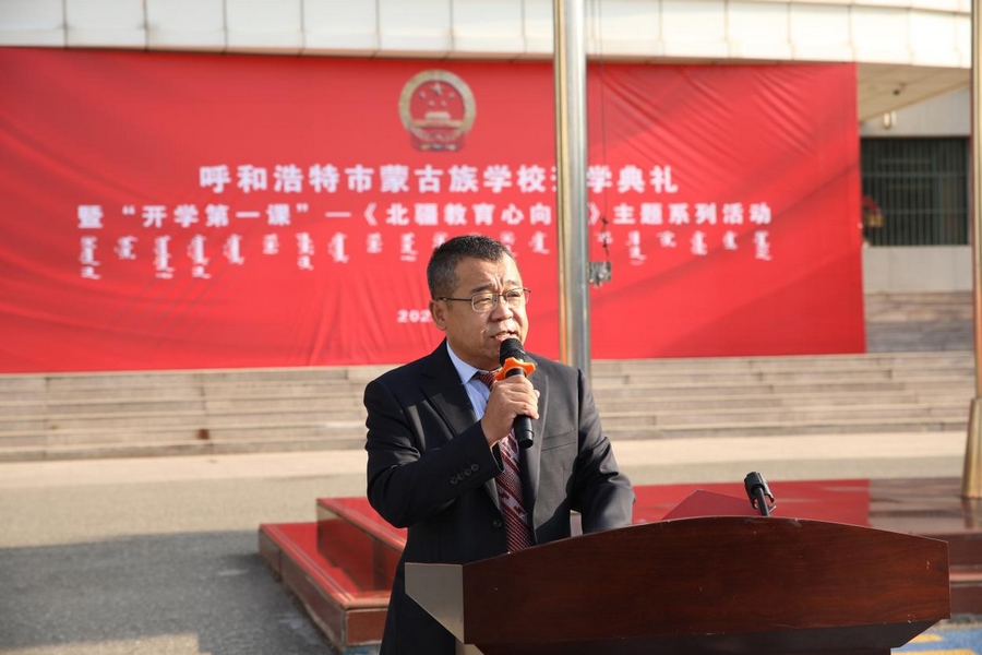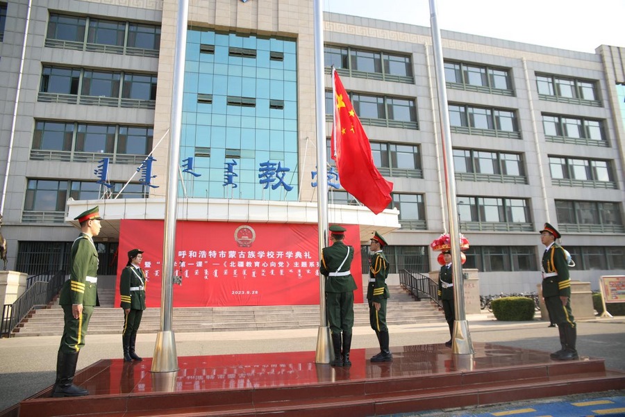 呼和浩特市蒙古族學(xué)校開展了主題為“北疆教育心向黨”開學(xué)第一課系列活動(dòng)。全校2900多名師生參加。102名黨員、干部重溫入黨誓詞,在黨旗下再次接受革命精神的凈化和洗禮。同時(shí),各班級(jí)開展了“青春踐行黨的二十大”為主題的班會(huì)活動(dòng),各班班主任結(jié)合專業(yè)特色和學(xué)生實(shí)際,叮囑學(xué)生要提高思想政治素質(zhì),堅(jiān)定理想信念,助力學(xué)生成長成才。