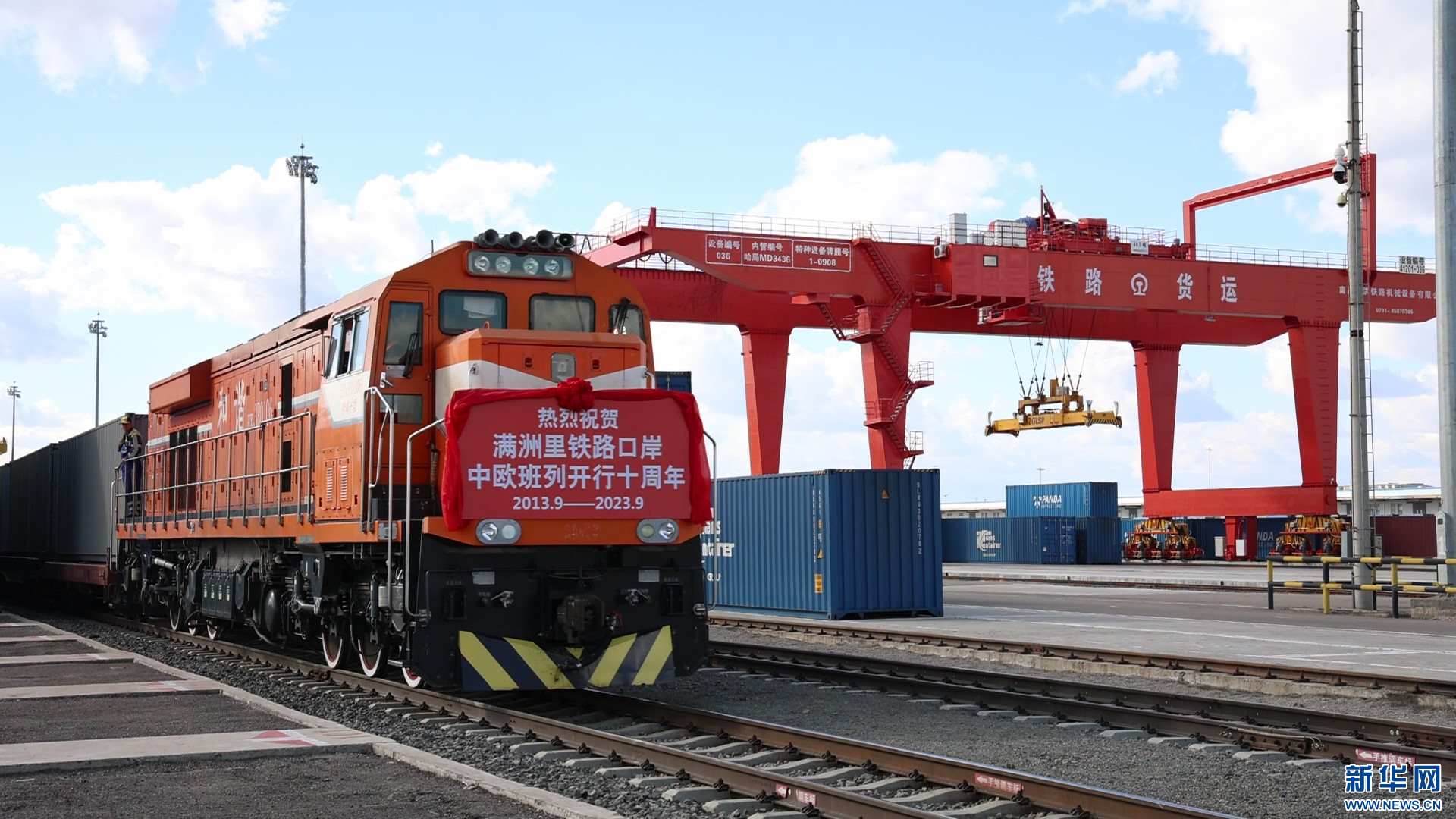 中歐班列駛出滿洲里國門。新華網(wǎng)發(fā) (李新軍 攝)