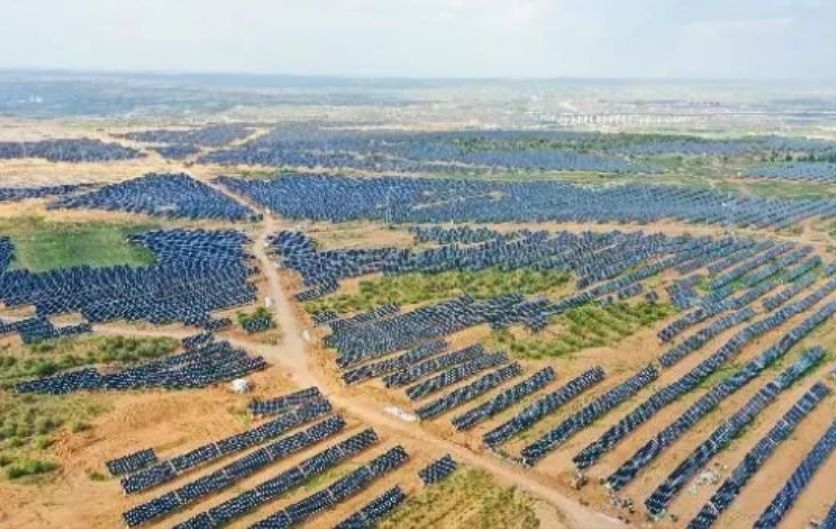 在內蒙古的全球最大規(guī)?!吧掣昊摹憋L電光伏基地項目。