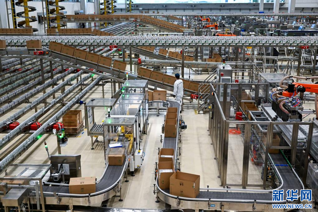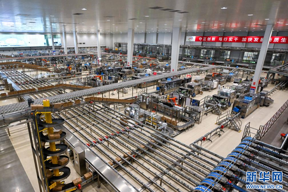 這是1月9日拍攝的呼和浩特市伊利現代智慧健康谷液態(tài)奶全球智造標桿基地生產車間。