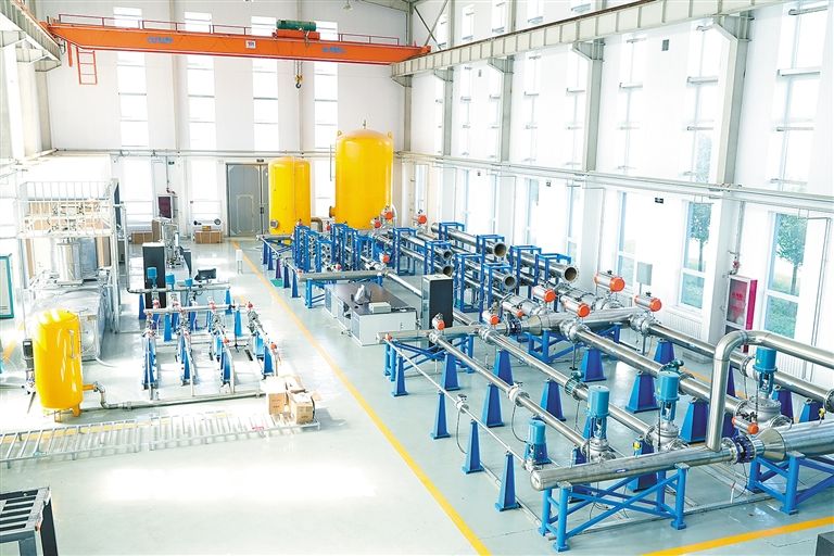 市場監(jiān)管部門研發(fā)的大口徑流量裝置為專利優(yōu)勢企業(yè)設備進行檢定校準服務。(供圖:內(nèi)蒙古市場監(jiān)管局)