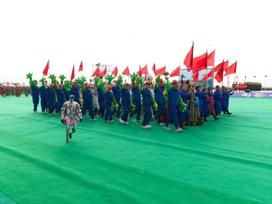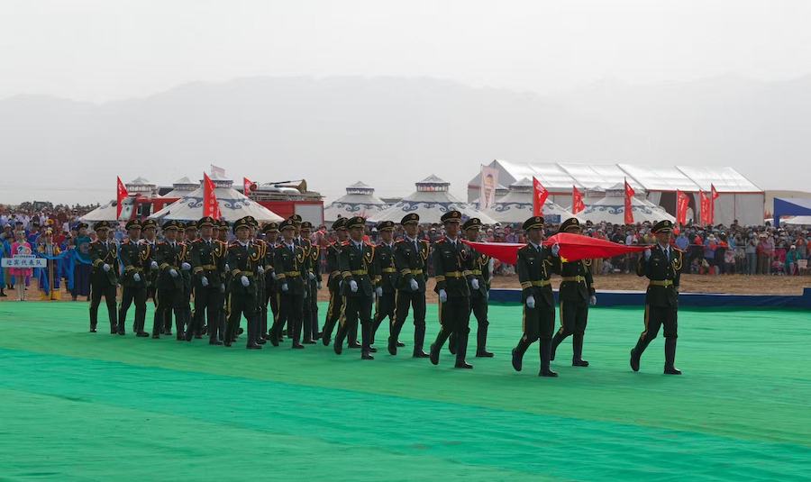 2025阿拉善那達(dá)慕開幕式上儀仗隊(duì)護(hù)送國旗走向場地