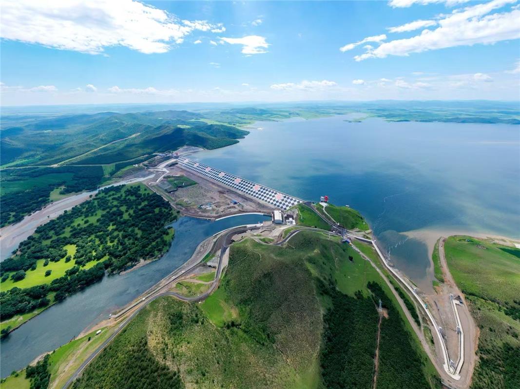 站在位于興安盟扎賚特旗文得根水利樞紐大壩上,1358米長(zhǎng)、48米高的梯字形主壩如銅墻鐵壁,與三面環(huán)山一起,將綽爾河攔出“高峽出平湖”的壯麗景致。19.64億立方米的總庫(kù)容,可抵御5000年一遇的大洪水。