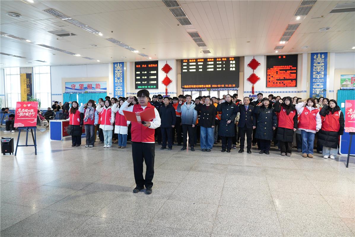 “阿姨您慢點,檢票口在二樓,行李我來幫您拎?!?9歲的杜鐵毅快步上前,穩(wěn)穩(wěn)接過老年旅客手中沉甸甸的編織袋。連日值守讓他的聲音帶著一絲忙碌后的沙啞,眼里的熱忱卻絲毫未減。作為興安盟向陽環(huán)保青年志愿者協會會長,這個春節(jié),他和志愿者們幾乎天天“泡”在車站,從進站引導、行李搬運到車次咨詢、換乘指引,用周到細致的服務,為奔波的歸途人送上新春里最真切的暖意。