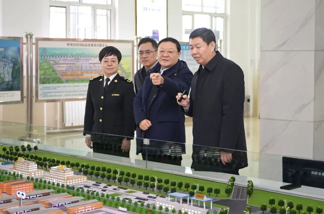 3月16日,自治區(qū)黨委書記、人大常委會主任王偉中在呼和浩特綜合保稅區(qū)深入了解封關運行、保稅加工、招商引資等工作進展情況。草原云·內蒙古新聞網(wǎng)記者