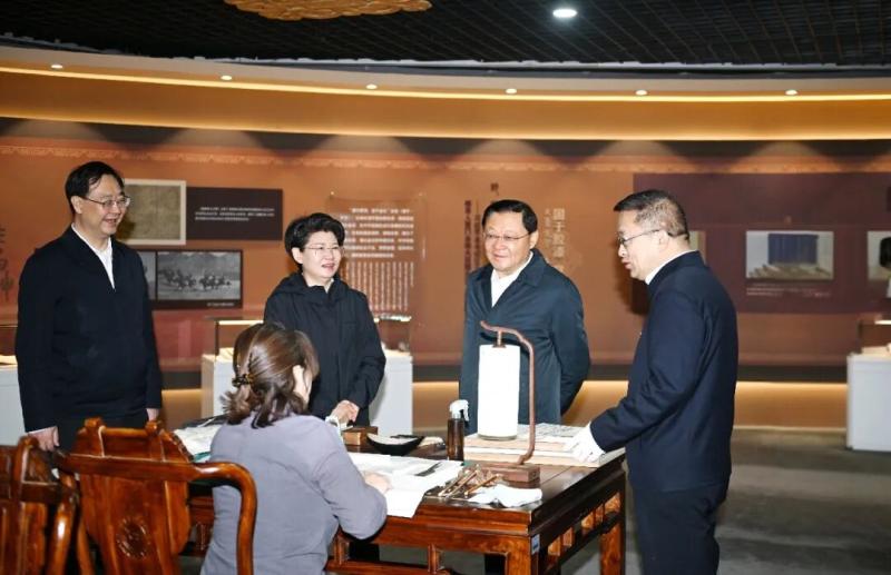 內(nèi)蒙古圖書館是自治區(qū)最早建立的公共圖書館。王偉中首先來到一樓展廳,詳細(xì)察看鑄牢中華民族共同體意識(shí)館藏古籍展覽情況。他說,要加強(qiáng)文化古籍傳承保護(hù),以數(shù)字化和智能化加速推動(dòng)古籍整理利用轉(zhuǎn)型升級(jí),更好發(fā)揮文化古籍在鑄牢中華民族共同體意識(shí)中的作用,促進(jìn)中華優(yōu)秀傳統(tǒng)文化創(chuàng)造性轉(zhuǎn)化、創(chuàng)新性發(fā)展。王偉中隨后來到圖書館二樓公共閱讀空間,了解群眾閱讀情況。他說,圖書館是體現(xiàn)文化發(fā)展水平的重要標(biāo)志,是滋養(yǎng)民族心靈、培育文化自信的重要場(chǎng)所,要堅(jiān)持正確政治方向,弘揚(yáng)中華優(yōu)秀傳統(tǒng)文化,創(chuàng)新服務(wù)方式,豐富特色閱讀活動(dòng),推動(dòng)全民閱讀,讓優(yōu)質(zhì)文化資源惠及更多群眾。在內(nèi)蒙古新華書店騰飛路店,王偉中仔細(xì)詢問集團(tuán)經(jīng)營(yíng)狀況、閱讀服務(wù)供給和“城市文化會(huì)客廳”建設(shè)等情況,強(qiáng)調(diào)要緊跟時(shí)代發(fā)展步伐,以數(shù)智賦能全民閱讀,讓書香內(nèi)蒙古更加可感可及。要堅(jiān)持深耕細(xì)作,加強(qiáng)優(yōu)質(zhì)閱讀產(chǎn)品供給,著力出好書、做精品。要在全社會(huì)倡導(dǎo)大講學(xué)習(xí),不斷提高人民群眾科學(xué)文化水平。
