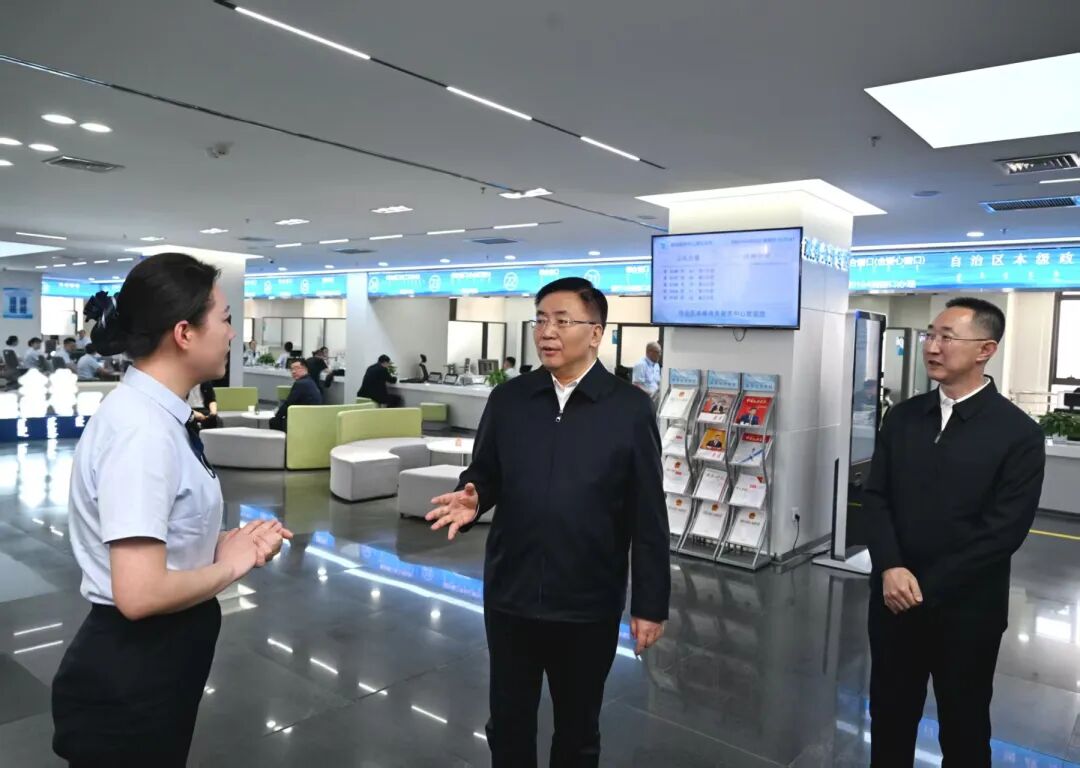 4月23日,包鋼來到自治區(qū)政務(wù)服務(wù)中心調(diào)研。在自治區(qū)本級(jí)服務(wù)大廳,他詳細(xì)了解“高效辦成一件事”“企業(yè)服務(wù)”等窗口工作情況。草原云·內(nèi)蒙古新聞網(wǎng)記者 韓卿立 攝