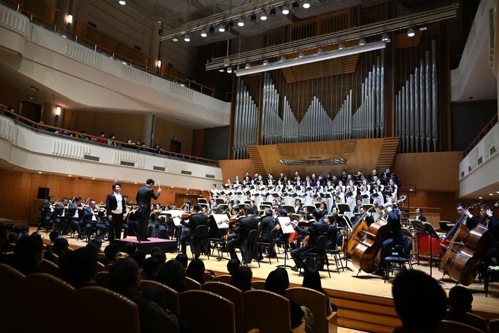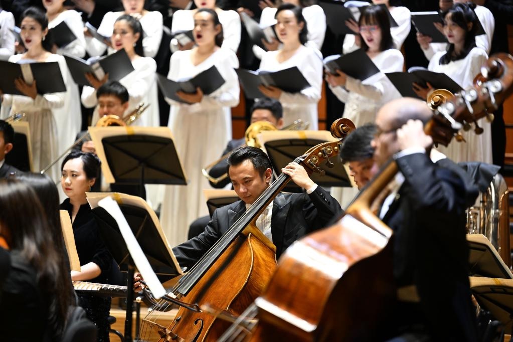 當(dāng)日,“黃河大合唱”中國(guó)交響樂(lè)團(tuán)交響合唱音樂(lè)會(huì)在北京音樂(lè)廳舉行。