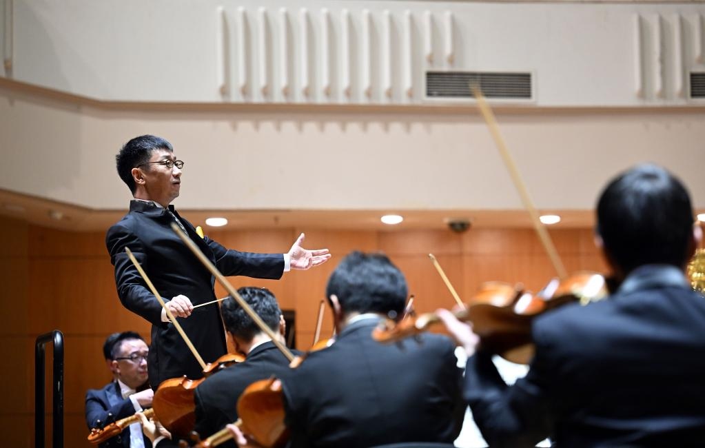 12月20日,指揮李心草在音樂(lè)會(huì)上指揮。