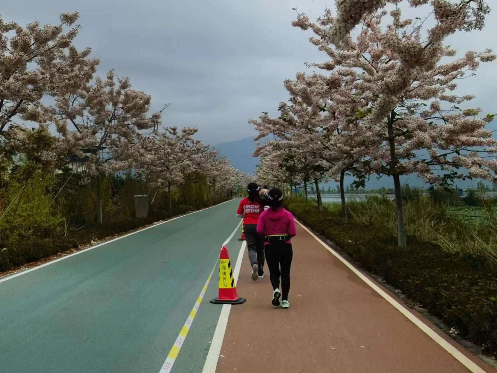人民網(wǎng)黨委委員、監(jiān)事會主席唐維紅參加了此次半程馬拉松。完賽后,她總結(jié)此賽事的特點(diǎn)有“三美”——美在賽道。湖靜謐、山秀美,粉的神黃豆花、紅的三角梅、藍(lán)的百子蓮、藍(lán)花楹……爭相斗艷,跑在山水間,一步一風(fēng)景!