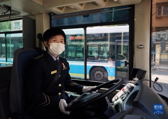 5月1日,在位于北京市朝陽區(qū)的柳芳公交場站,104路公交車駕駛員高國然駕駛車輛準備駛出。