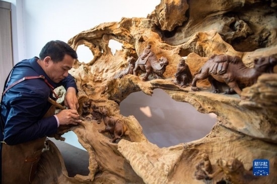 洞口木雕發(fā)祥于湖南省邵陽(yáng)市洞口縣,歷史悠久,上個(gè)世紀(jì)80年代以來(lái),洞口木雕產(chǎn)品遠(yuǎn)銷海外。傅立先是洞口木雕非遺傳承人,他的爺爺傅滿山和父親傅金林曾是木雕工藝廠的老師傅。近年來(lái),傅立先對(duì)洞口木雕的創(chuàng)作方向進(jìn)行新的探索,把傳統(tǒng)工藝與現(xiàn)代文化相結(jié)合,創(chuàng)作出很多精美的木雕作品。