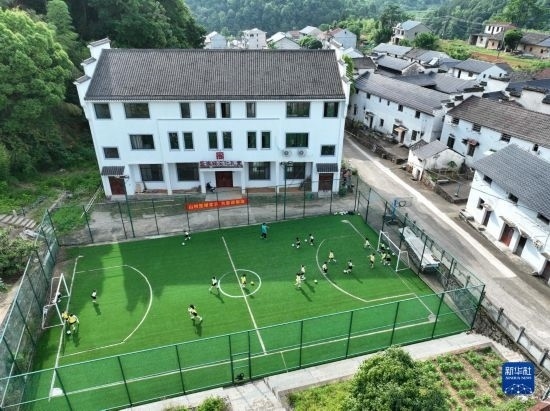 浙江紹興諸暨市浬浦鎮(zhèn)中心學校依托村鎮(zhèn)足球場、中醫(yī)藥文化體驗中心等,開展足球、木球、五禽戲等特色項目,為體育教育注入活力。