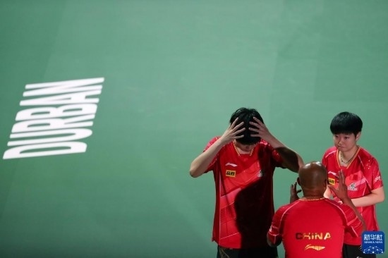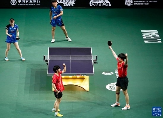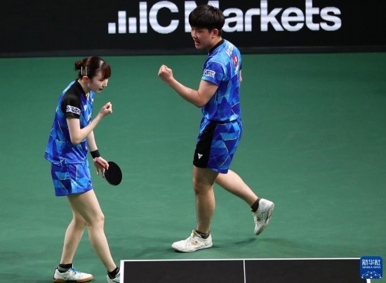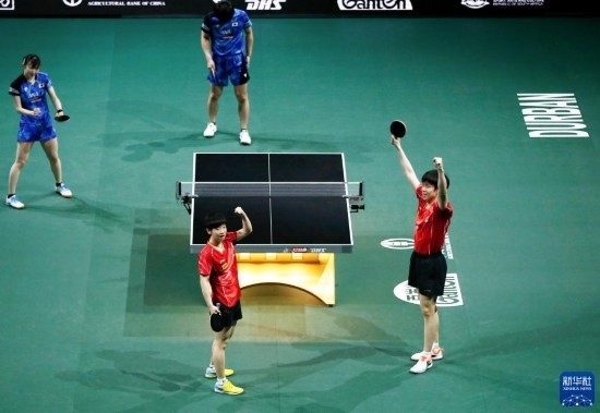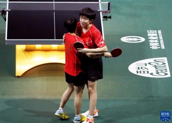 當(dāng)日,2023年世界乒乓球錦標(biāo)賽混合雙打頒獎(jiǎng)儀式在南非德班舉行。中國(guó)組合王楚欽/孫穎莎以3比0戰(zhàn)勝日本組合張本智和/早田希娜,奪得冠軍。