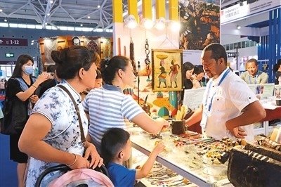 “我每年都會來文博會尋找貨源,今年特別注意到了‘一帶一路·國際館’。這里異域風情濃厚,產(chǎn)品也比較新穎?!瘪R里展區(qū)前,在深圳從事工藝美術行業(yè)的王女士詳細詢問了幾款非洲黑木雕產(chǎn)品的工藝、價格,與外國展商加上了微信。