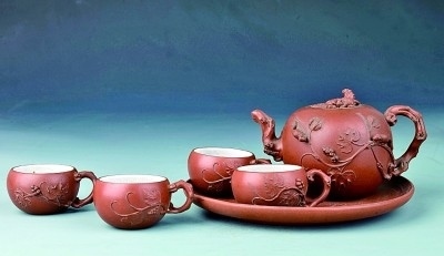 紫砂松鼠葡萄茶具 朱可心