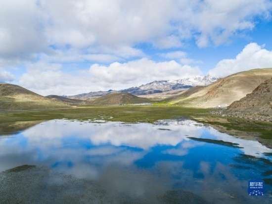 這是錯(cuò)那市區(qū)附近的濕地(6月28日攝,無人機(jī)照片)。