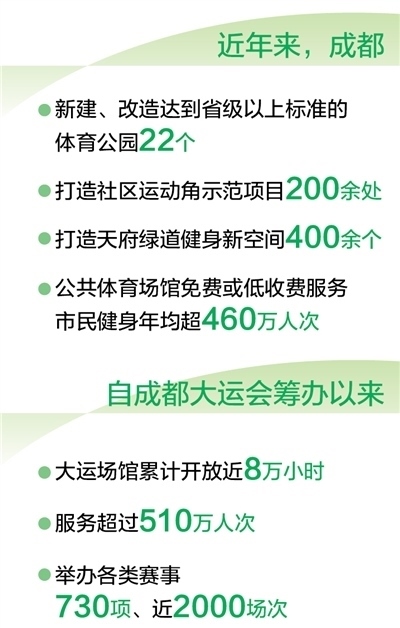 一場體育盛會,能給舉辦城市帶來什么?成都在啟動大運(yùn)會籌辦工作之初就有清晰的思路,“大運(yùn)惠民、共享辦賽”理念貫穿始終。用好用活大運(yùn)場館,優(yōu)化體育公共服務(wù)、營造城市體育氛圍……搭乘大運(yùn)東風(fēng),百姓的獲得感和幸福感實(shí)實(shí)在在。
