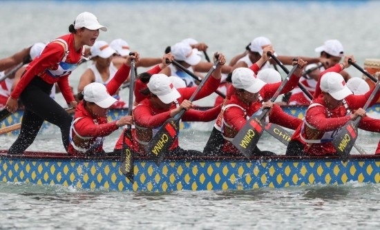 女子組決賽中,中國(guó)隊(duì)出發(fā)后便處于領(lǐng)先,并一直將優(yōu)勢(shì)保持到最后,包攬本屆亞運(yùn)會(huì)龍舟女子組比賽3枚金牌。印度尼西亞隊(duì)和韓國(guó)隊(duì)分獲銀牌和銅牌。