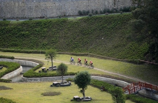 10月28日,參賽選手在比賽中。當(dāng)日,第一屆全國學(xué)生(青年)運動會男子山地自行車越野賽在廣西南丹縣舉行,貴陽市代表隊選手王勝以1小時4分36秒奪得冠軍,遵義市代表隊選手文靈浩以1小時4分38秒獲得亞軍,成都市代表隊選手解道超以1小時5分12秒獲得季軍。新華社記者 陸波岸 攝