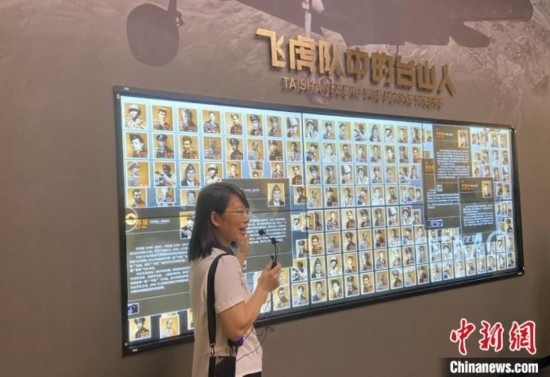 中國(guó)僑都華僑華人博物館內(nèi),講解員正在介紹飛虎隊(duì)中祖籍廣東臺(tái)山的隊(duì)員。畢松杰 攝