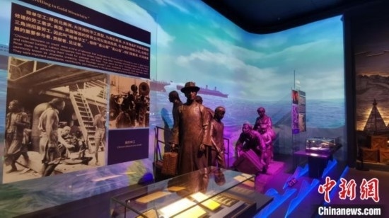 中國(guó)僑都華僑華人博物館展示當(dāng)年“契約華工”出洋工作的場(chǎng)景和資料。江門市委宣傳部 供圖