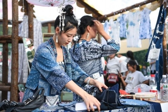 榕江縣古州文化旅游投資開(kāi)發(fā)(集團(tuán))有限責(zé)任公司總經(jīng)理孫國(guó)秀說(shuō),“村超”的火爆帶火了相關(guān)產(chǎn)業(yè)?!皟H全縣開(kāi)發(fā)的藍(lán)染‘村超’文創(chuàng)產(chǎn)品就有200多款,包括T恤、布袋、球隊(duì)隊(duì)標(biāo)等?!?/p>