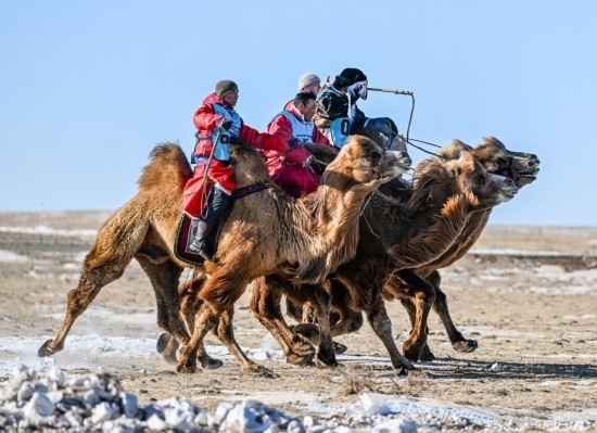 牧民畢力格圖看賽車比賽過足了眼癮,在參加完賽駱駝比賽后得出一個結(jié)論:“駱駝就相當(dāng)于牧民的越野車,騎著駱駝在雪原中奔跑,比賽車還刺激。”