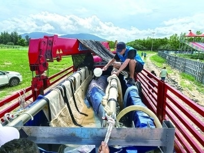 轉(zhuǎn)移“海棠”期間,工作人員不斷向它身上潑灑海水,使其皮膚保持濕潤(rùn)。