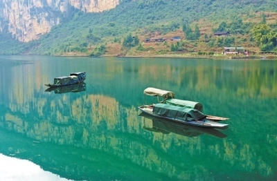 兩岸青山夾碧水,一江青綠被畫舫式的動(dòng)力渡船攪出漣漪?!皝?,帶你體驗(yàn)下啥子叫水上人家!”酉陽縣住建委副主任劉繼明熟練地接過“船把式”拋來的纜繩,牽引著熄火后的船緩緩靠岸,以免船底與碼頭石階磕碰,接著一躍登船,又把記者拉上去。