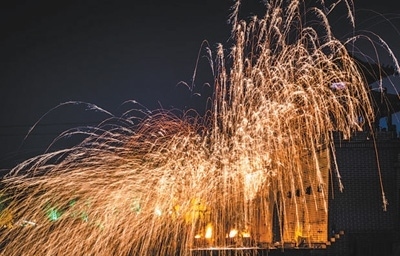 碎炭、起火、熔鐵、揚水、打花……夜晚,在河南開封清明上河園景區(qū),一場流光溢彩的“打鐵花”民俗文化表演正在上演(見圖,受訪者供圖)。隨著1600攝氏度的鐵水在夜空中幻化成漫天的“星光”,絢爛、璀璨,瞬間驚艷全場,現(xiàn)場觀眾由衷發(fā)出陣陣驚嘆。而這一巧奪天工的“重金屬藝術(shù)”正是開封打鐵花第二十二代傳承人劉小松及其團(tuán)隊的作品。