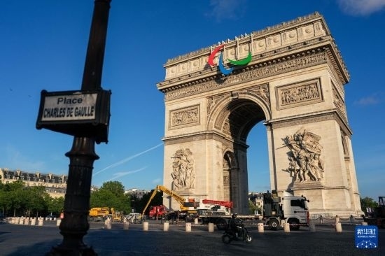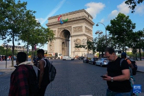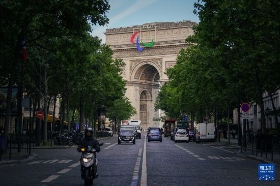 這是6月28日在法國(guó)巴黎拍攝的懸掛有殘奧會(huì)標(biāo)志的凱旋門(mén)。新華社記者 許暢 攝