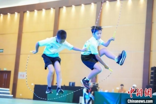 個人繩、車輪跳、交互繩……第十二屆海峽青年節(jié)·首屆海峽兩岸(福州)青少年跳繩錦標(biāo)賽13日在福州海峽青年交流營地開賽。