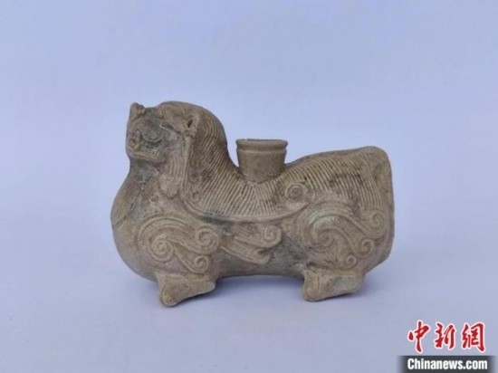 張昭家族墓出土的青瓷獅形插器。南京市考古研究院供圖