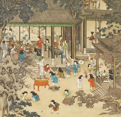 中國畫 《歲朝歡慶圖》(局部),作者為清代姚文翰。