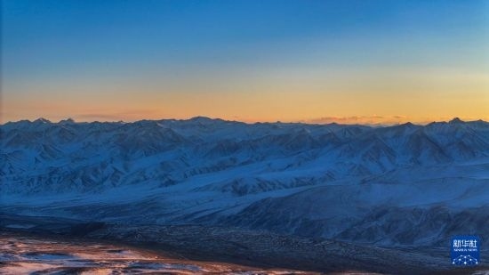 這是夕陽下慕士塔格峰周邊的昆侖山脈(1月12日攝,無人機照片)。