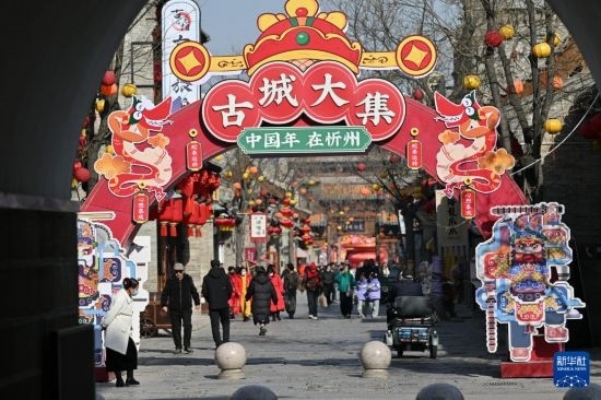 2月20日,游人在忻州古城游覽。